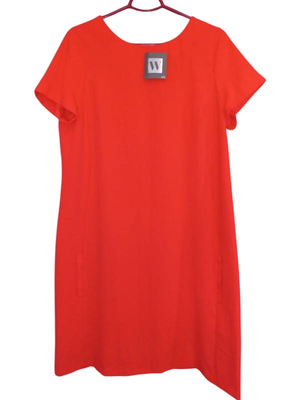 оранжевое платье - футляр 56-58р, указательный 18 европ. размер, ткань не тянется ПОГ - 57см, ПОТ - 57см, ПОС - 63см, рукав - 18см, длина - 106см