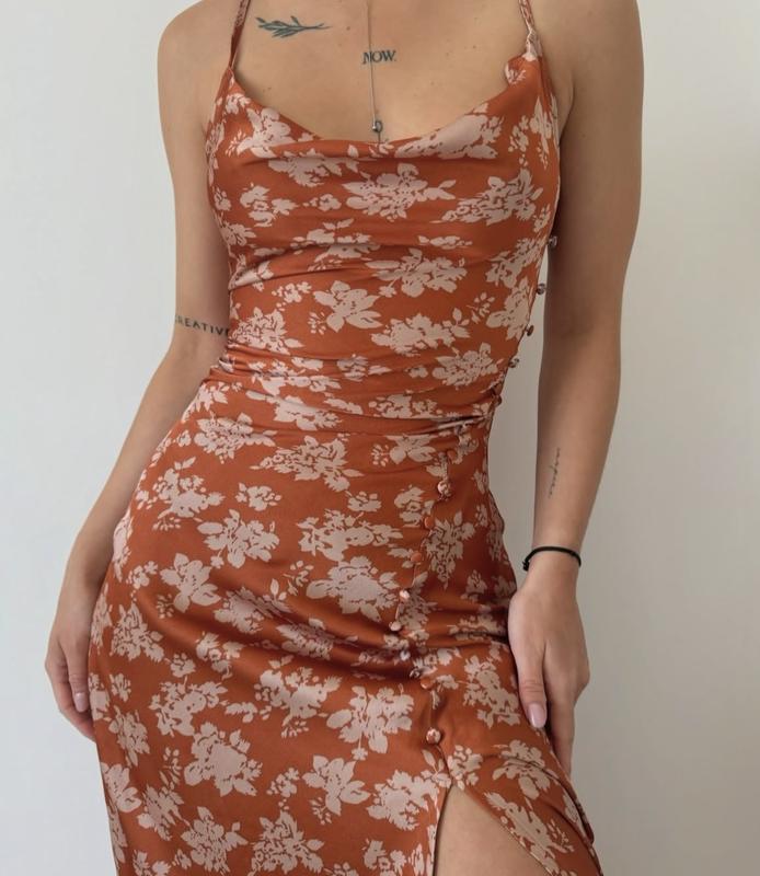 Красива сатинова міді сукня з голою спинкою.Розмір 12.Довжина 112 см,груди 46 см,талія 39 см,бедра 52 см