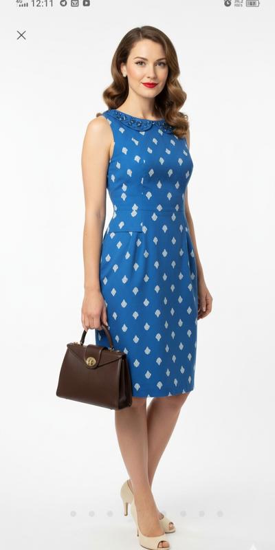Платье в идеальном состоянии, почти новая, хлопковая подкладка. Тканини основна- бавовна По спинке молния и застежка на пуговицу Воротник отделан качественными металлическими камешками покрытые эмалью Платье невероятно элегантное!! пол груди 51 пол талии 40 пол бедер 51 длина 95 высота проймы 21