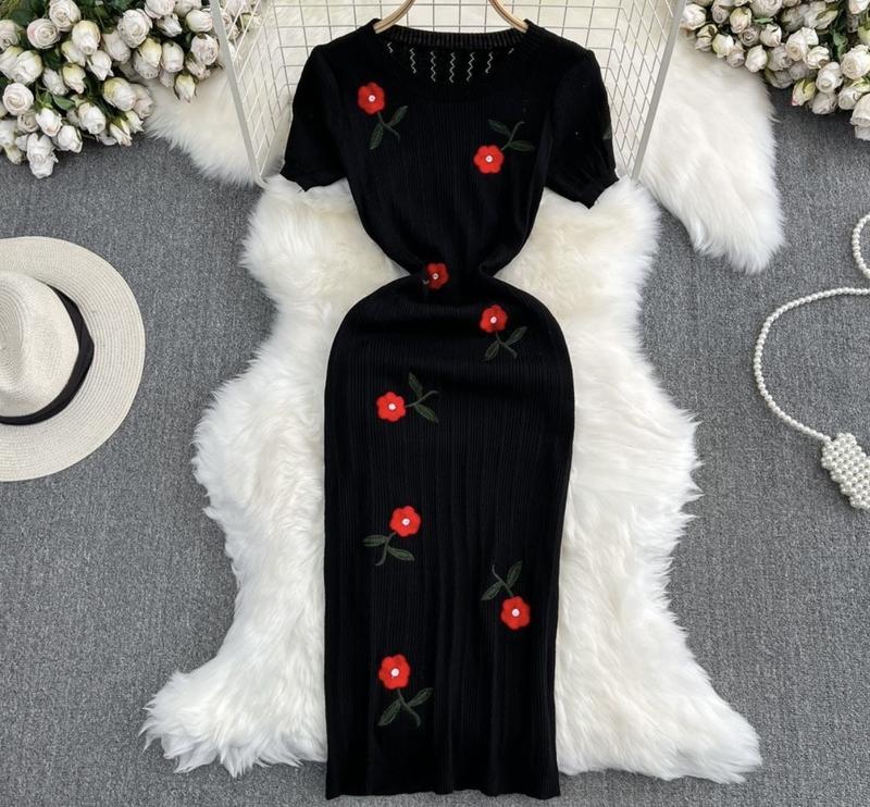 Нова жіноча літня довга чорна трикотажна сукня приталена по фігурі у квіти