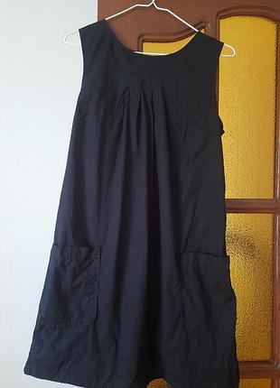 платье средней длины - 86 см, полуобхват груди от 48 см + еще как минимум до 8 см может быть за счет модели фасона (складок), оптимально- 50- 53 см. Силуэт прямой, внизу накладные карманы. 100% бавовна,