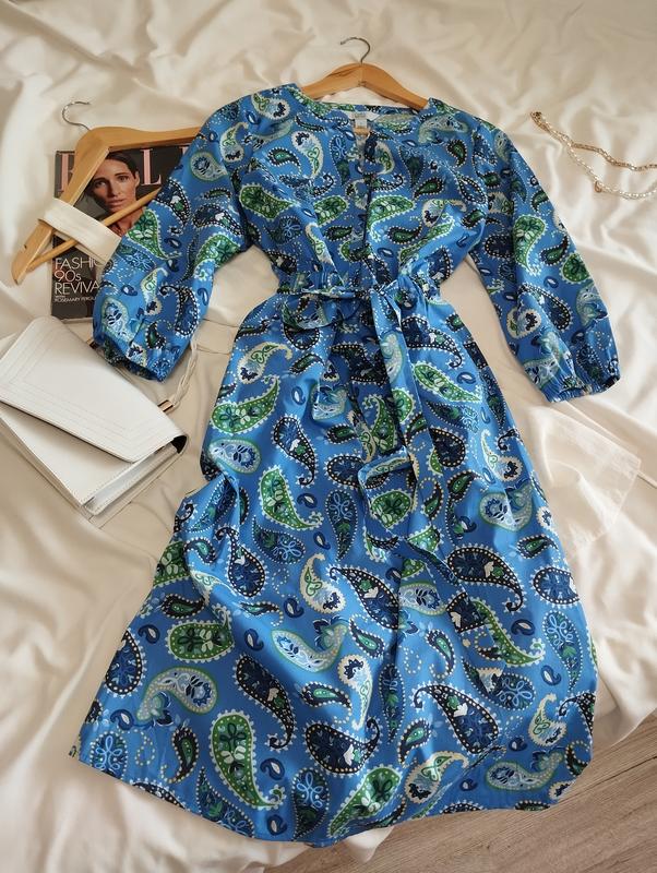 Платье известного американского бренда Croft & Barrow в стиле casual. Узор пейсли в синих и зеленых оттенках. Эластичный пояс, рукав 3/4. Комфортный крой, есть карманы. Новая без бумажной бирки Размер S, но ориентируйтесь на M. Длина 106 ПОг 52 ПОт 38 - 53 ПОс 58