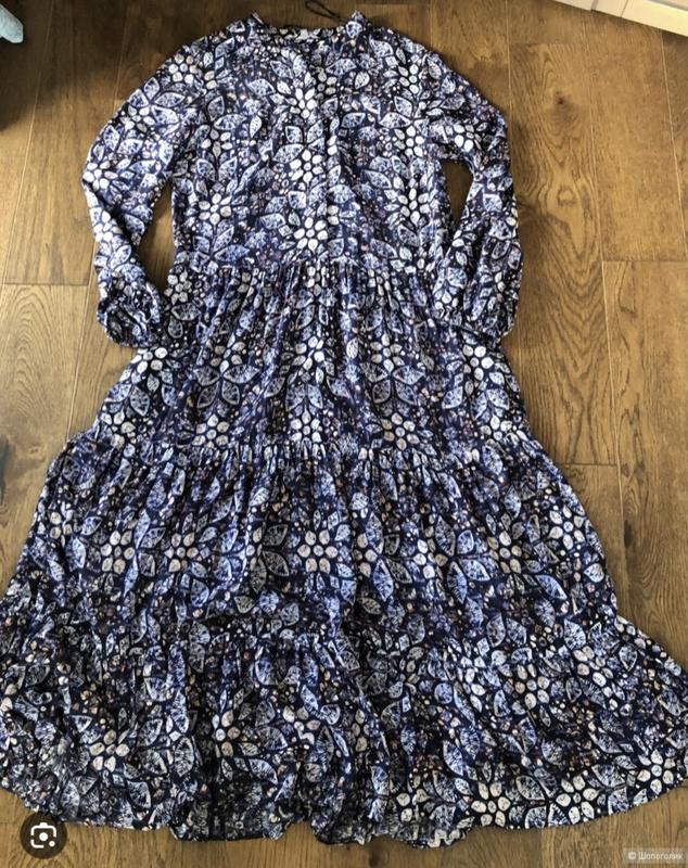 Гарна сукня вільного крою з чудовим складом 60% віскози 40% модел Сукня дуже карна та зручна. Має ґудзики до поясу. Спідниця пишна, пошита якутами. Півобхват таліі 48 см Довжина рукава 60 см Довжина сукні 128 см