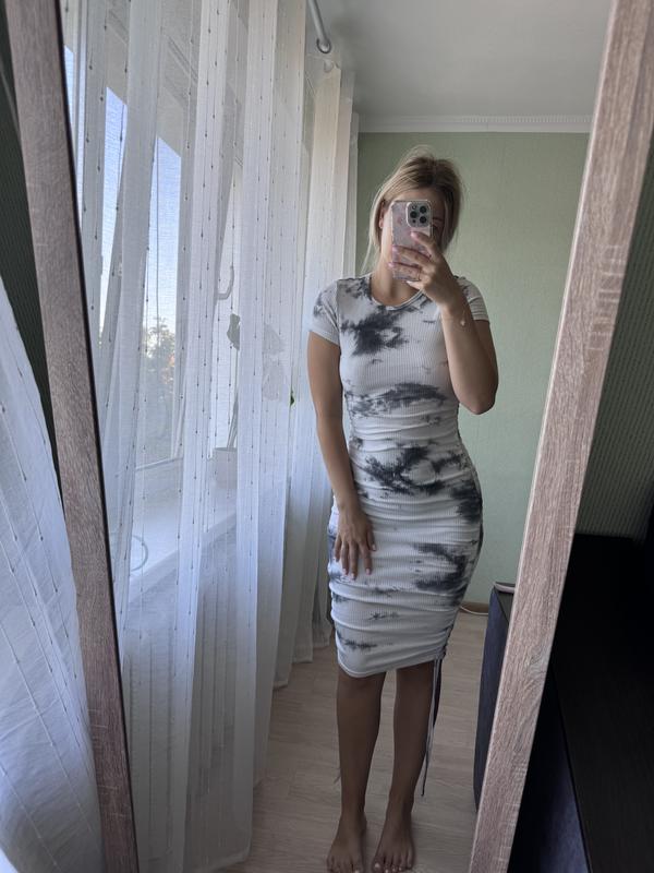 Сукня в рубчикв популярний принт, на завʼязках по бокам, можна носити як міді , а також затягнути і зробити як міні, дуже універсально 2 в 1 Тканина рубчик Розмір підійде на С- Л за рахунок того що добре тягнеться, вказаний М