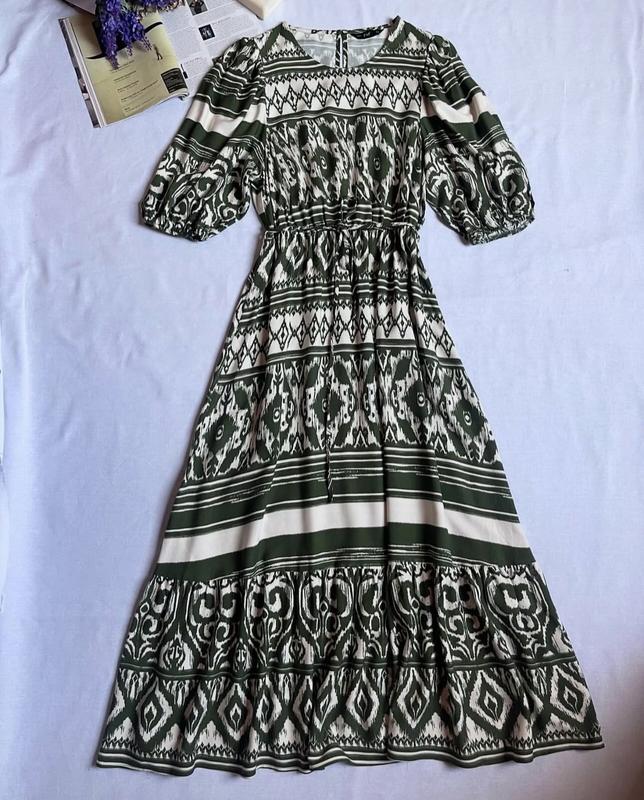 Сукня міді в гарний принт від F&F ✅Розмір 38/M ✅Стан нової ✅Тканина - віскоза 100% ✅Особливості на талії пояс завʼязка ✅Заміри: довжина 130 см, ПОГ 49 см, ПОТ 32 см, резинка тягнеться до 46 см, ПОБ вільного крою 👛 615 грн