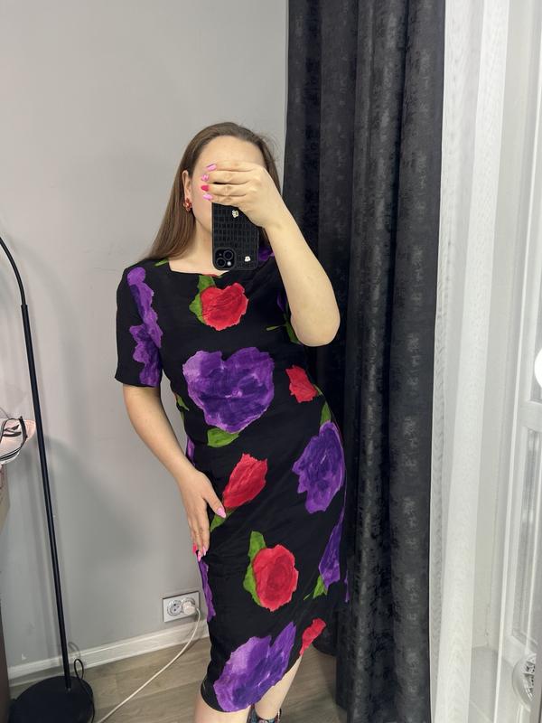 Платье миди чёрное в большие цветы principles вискоза размер 46