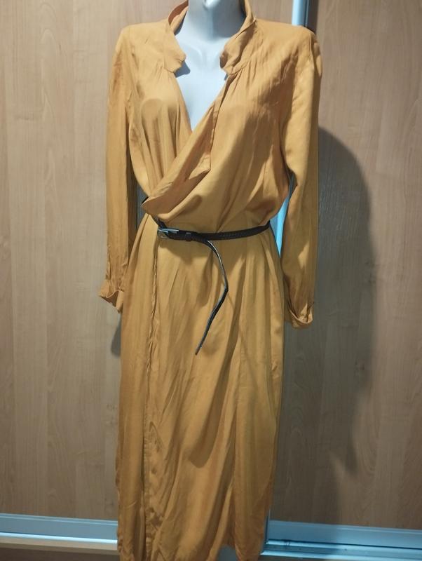 Платье на запах, очень стильно смотрится, горчичный цвет, длина -110 см, ширина на запах, плечи-42 см,рукав-55 см