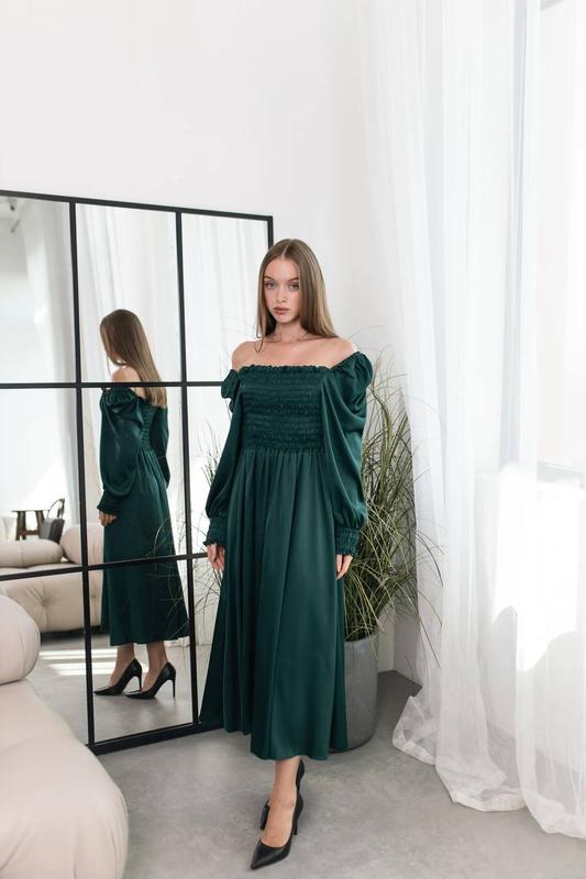 Новинка - невесомое платье из шелка❤️ Беслично садится по фигуре, бесспорный фаворит для любого события💥 ▪️размер: единственный (42-48) заміри надам за потреби ▪️цвет: черный, айвори, изумруд, ▪️ткань: шелк Армани ▪️модель: 205solo