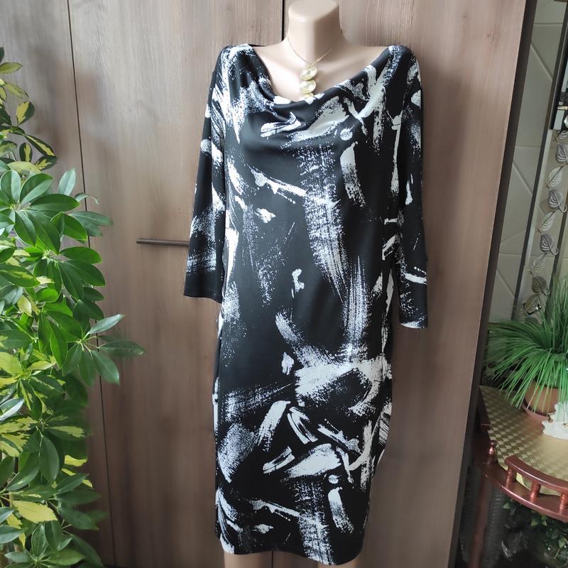 Платье в идеальном состоянии, аккуратный пошив, есть подкладка, фасон прямой легко приталенный- красиво подчеркивает фигуру, симпатичный абстрактный принт; ПОГ-60 бедра-60 длина-97 рукав-47