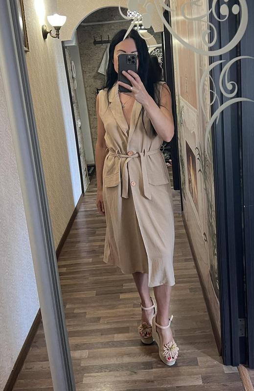 Качественное платье, очень красиво сидит на фируги. Спереди декольте, зади большой разрез. Базовый бежевый цвет.