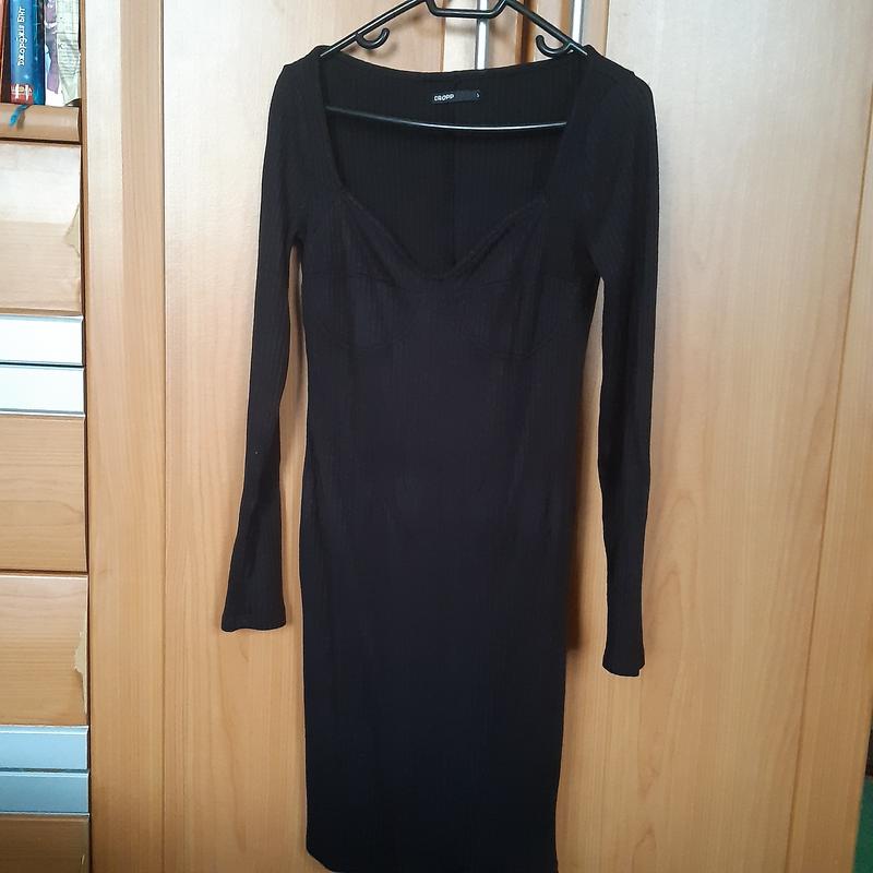 платье черное, приталенное, с вырезом,короткая, размер s, одетая пару раз,рубочек