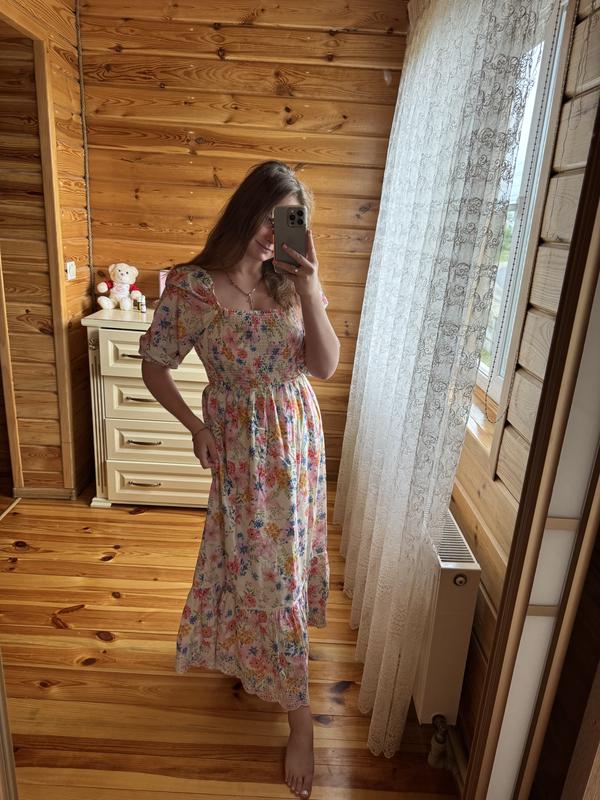Стан ідеально новий Одягнена сукня 3 рази максимум,розмір 38 Десь це М/Л На грудях резинка тому тягнеться,я купувала як була вагітна ,дуже гарно на животику