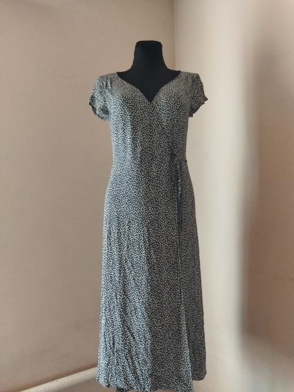 Платье -халат на запах 38 евро размера.Ткань по типу пилотного шифона, не осветляет, низ на подкладке.Стан идеален без дефектов.