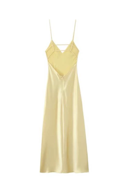 Невагома сукня пастельно жовтого кольору, на підкладці Фасон Зара 1:1, але тканина легша Обхват грудей до 88 Обхват талії до 74 Бедра до 105 Довжина 120 Зріст бажано до 163, щоб спинка сіла