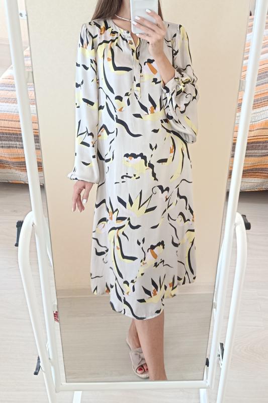 Легкое шелковое платье от PBO. Состояние отличное. Тканина тягнеться. Прямая. Красивый широкий рукавчик. На грудях гудзики. Є шлейки для ременя. Розмір на бірці 44, краще на 42. 95% шовк, 5% еластан Длина 112см Рукав 69см Пог 55см Поб 58см Оплата на карту!!