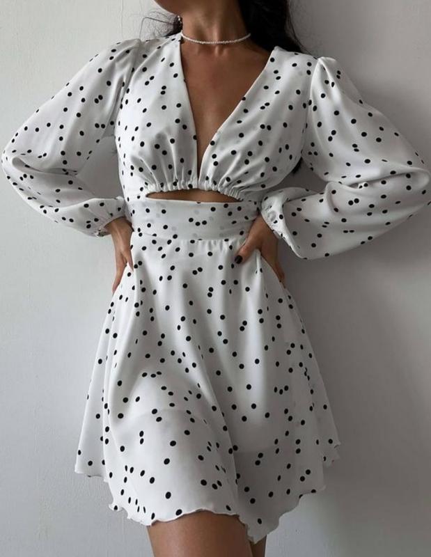 платье белое в черный горошек легенько и приятный к телу имеет вырез на животе по подробностям пишите в лс