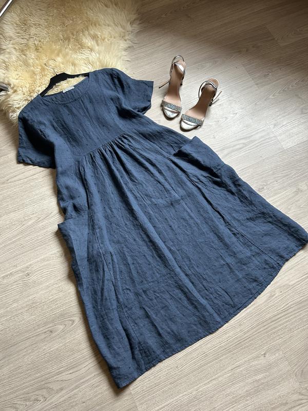 Colette Льняна сукня 14-16 р з вишивкою та кишенями Пог 54 Пот 55 По стег 70 Пл 43 Рук 20 По біц 19 Довж 115 Ц580🏷️
