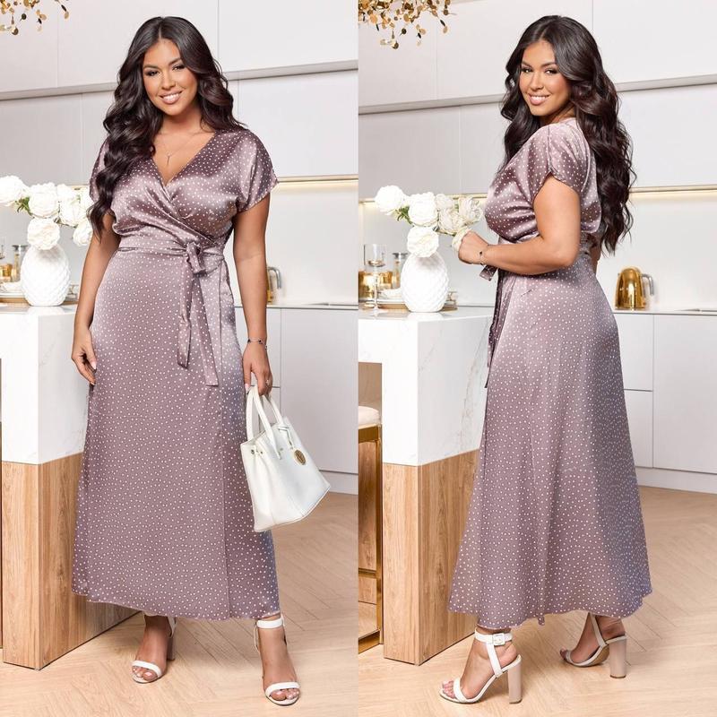 Сукня арт. dvd. 7825-1 Размер: 46-48; 50-52; 54-56; 58-60 Ткань: шелк армани Длина платья: 145 см. Длина рукава: 25 см. Стильное платье на запах, с юбкой покроя солнце, рукав кимоно