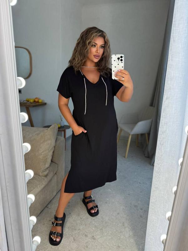 ❤️❤️❤️Новинка!!!!! Ход сезона!🔥🔥🔥Стильное платье спорт шик🪩 !!!!Лето 2025 г.🔥🔥🔥 💌мод№1333 1523 💌Цена: 820 + 100 грн украшение в камушках 💌Размеры: 48-50, 52-54, 56-58, 60-62 💌Ткань: тележка Турция, очень мягкая 💌Цвет: черный 💌Платье свободного кроя в боковых швах карманы. Очень легкая, мягкая, не парит 48-50 Ог 106 см Об 122 Длина 114 см 52-54 размер Ог 110 см Ос 128 см Длина 115 см 56 58 ог - 114 см Ос 134 см Длина - 116 60-62ог ог 120 см Ос 140 см Длина - 117см