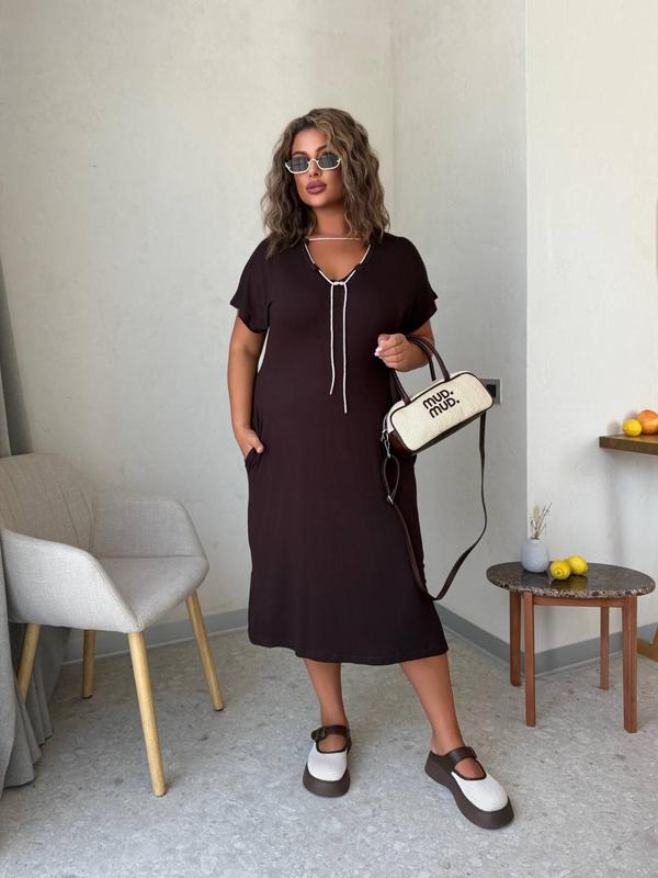 ❤️❤️❤️Новинка!!!!! Ход сезона!🔥🔥🔥Стильное платье спорт шик🪩 !!!!Лето 2025 г.🔥🔥🔥 💌мод№1333 1523 💌Цена: 820 + 1000 грн украшение в камушках 💌Размеры: 48-50, 52-54, 56-58, 60-62 💌Ткань: тележка Турция, очень мягкая 💌Цвет: шоколад 💌Платье свободного кроя в боковых швах карманы. Очень легкая, мягкая, не парит 48-50 Ог 106 см Об 122 Длина 114 см 52-54 размер Ог 110 см Ос 128 см Длина 115 см 56 58 ог - 114 см Ос 134 см Длина - 116 60-62ог ог 120 см Ос 140 см Длина - 117см