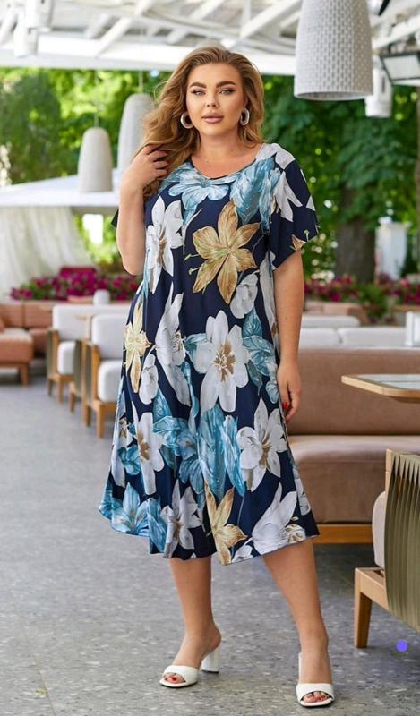 Платье штапель. Производство Украина. Отличное качество ! Натуральная дышащая ткань. Размеры 4XL , 5XL. Объем груди 142, 146. Объем бедер 154 , 158. Длина платья 110 см. Очень красивая модель!