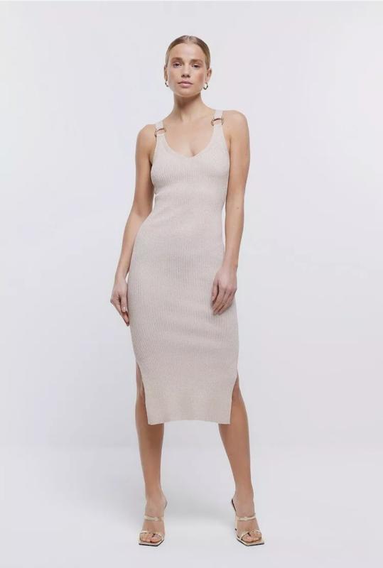 Платье River Island с золотистым ребристым принтом и металлической фурнитурой, хорошо тянется, длина 116см