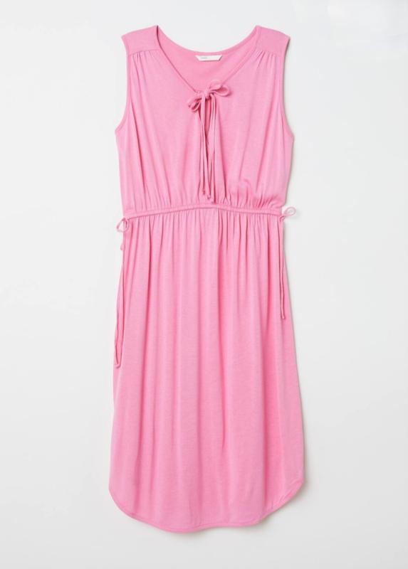 Цвет: Розовый. Фасон: платье без рукавов, с V-образным вырезом горловины, завязками на груди и кулиской на талии, что позволяет регулировать посадку. Длина: длина миди, ниже колена. Особенности: Имеет завязки на плечах и по бокам для дополнительной регулировки или декоративного элемента. Край подола закруглен.