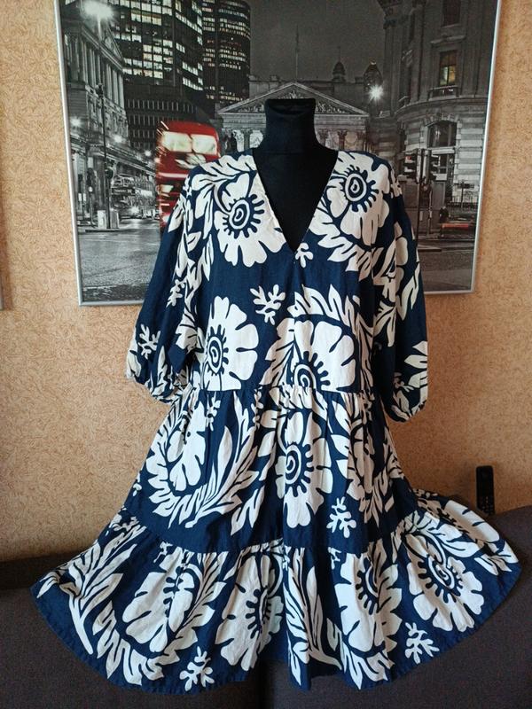 Роскошное женское платье f&f p.16 хлопок-85%. лен-15%