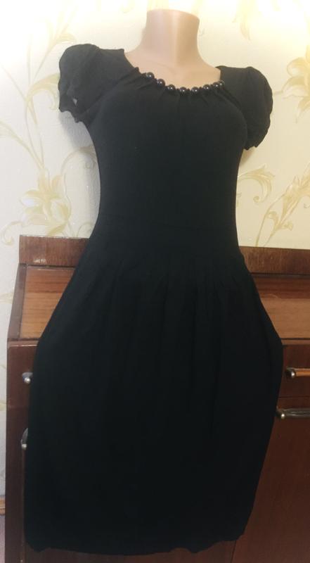Симпатичное платье, без дефектов, украшено бусинами, трикотаж. Ткань мягкая, приятная к телу.