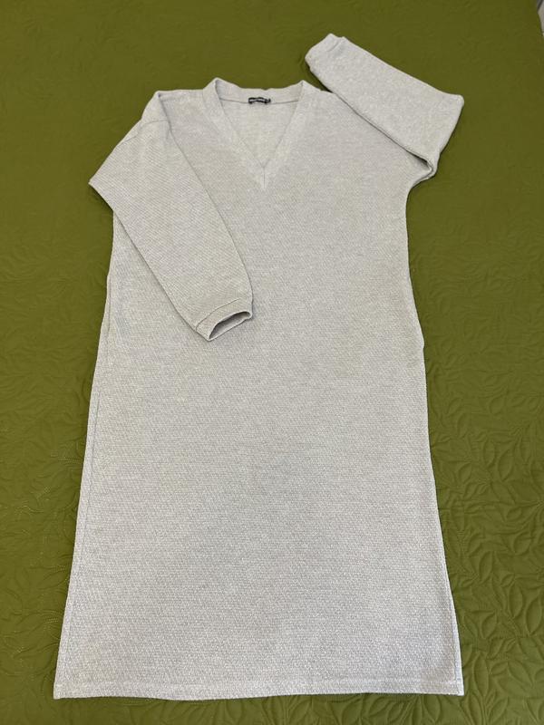 Трикотаж з люрексом, 2 кишені, вільна, V образний виріз. Без витачок. Мʼяка, зручна, просто ідеальна. Довжина 104, талія та стегна 108, груди 110, рукав 49 разом з манжетом, плече 18. Дуже гарно тягнеться.