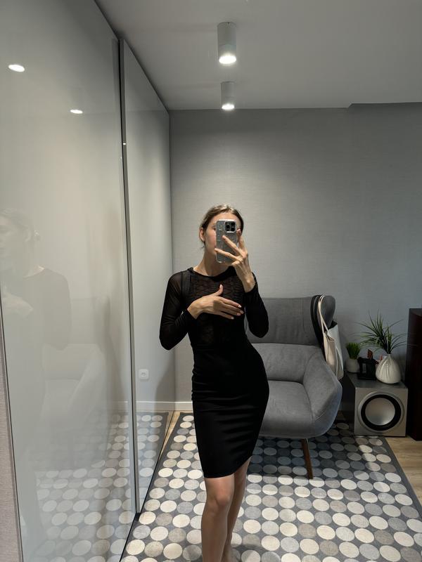 Нова облягаюча сукня по фігурі з напівпрозорим верхом Розмір S