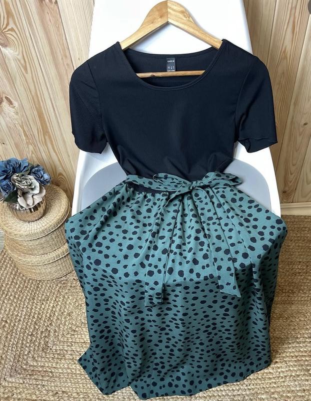 Стильна міді сукня в лео принт, верх футболка в рубчик , талія поясок, виглядає стильно Розмір с/м