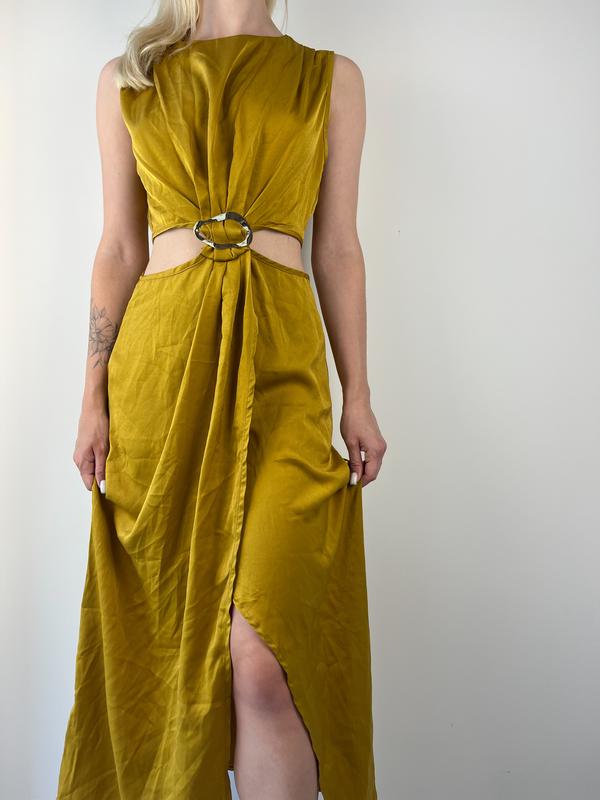 Платье в пол, с разрезом на ножке и разрезами на талии
