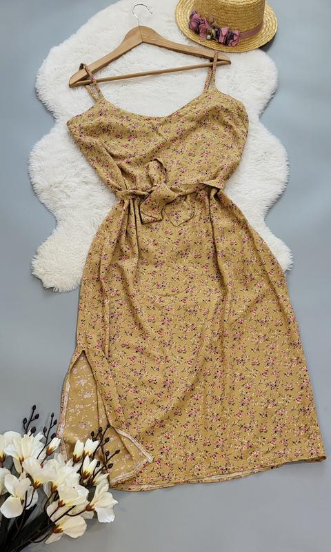 Платье миди с разрезом в принт цветов с поясом 100% вискоза