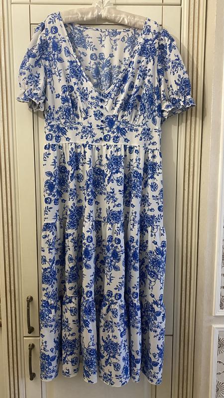 Ця сукня — справжній комплімент вашому стилю! Біло-синій квітковий принт, ідеальний крій, волани, рукав « фонарик»,виріз - виглядає жіночно,елегантно і стильно. Підкреслює фігуру, додає впевненості й гарного настрою Неповторний образ на кожен день,для відпустки, прогулянки чи фотосесії. Розмір XL-XXL Заміри: Довжина-125 см Плечі-40 см Обʼєм грудей до 120 см Талія на резинці-98 см +