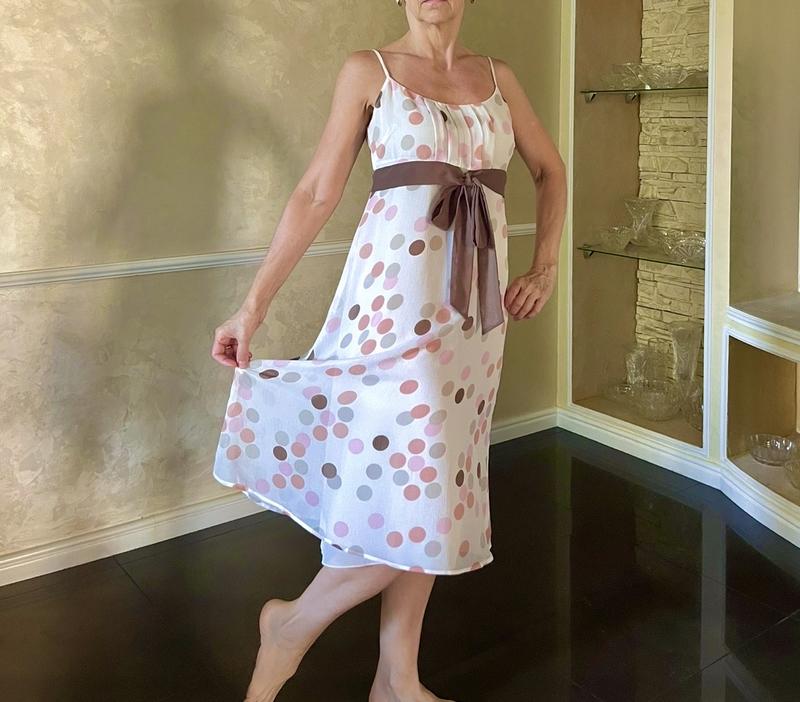 M&S collection нова сукня в горох на підкладці. Тканина легка, схожа на шифон. Сбоку на блискавці. Фото на моделі з розміром S. Розмір з бірки 8/36. Довжина 102 см, регулюється брітелями. Напів обхват грудей 42 см. Напів обхват стегон 60 см.