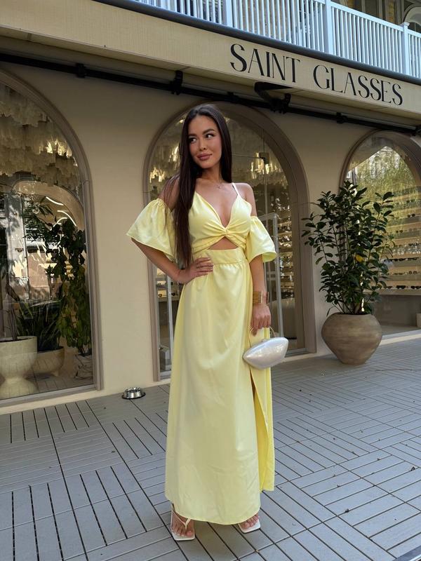 Новинка 🔥🔥🔥🔥 Реал фото 📸 Сукня Мод 218 Тканина: Софт Колір :чорний,жовтий, червоний , беж Розмір XS-S ; M-L Елегантна сукня міді з відкритими плечима, тонкими бретелями та вирізом під грудьми. Легка спідниця та волани на рукавах додають образу романтичності та жіночності.