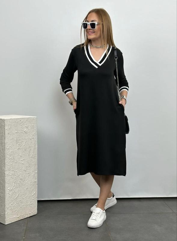 Сукня 🔵Мод 054 🔵Размеры: 48-50, 52-54, 56-58 🔵Ткань: двухнитка отличного качества ( обладает хорошей растяжимостью) 🔵Цвета: черный Замеры👇👇👇 ********** ОС 110/118/126 Длина 110 см