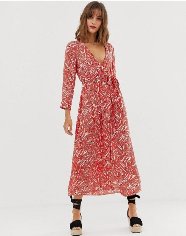 Платье Vero Moda, на груди запах, от талии вниз маленькие пуговицы, обтянутые тканью. Размер XS подойдет на Размер S Длина - 123 см, Рукав 51 см ПОГ - 40 см, ПОТ - 36 см.