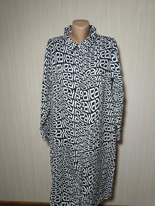 Платье-рубашка миди осенняя женская. Черная с белым геометрическим принтом XL-XXL длина 108 см ог 59 см бедра 63 см рукав 58 см в идеальном состоянии