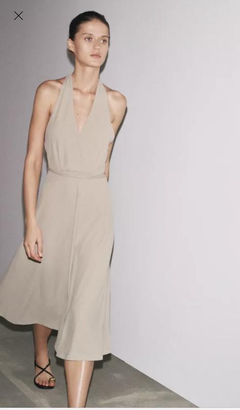 Сукня Zara з перехрещеним коміром хальтер. Відкрита спина, розкльошений низ. Нова без бірки. В наявності є M, L.