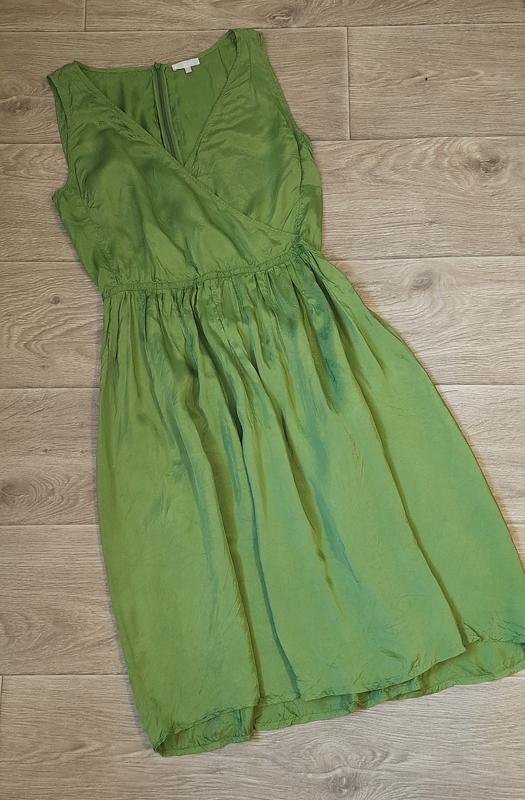 Тонкое легкое платье, размер 2, ткань rayon вискоза (штучный шелк), имитация запаха, сзади застежка молния, стан на фото плечи 38 пог 48 пот 36 поб свободное длина по спине 104