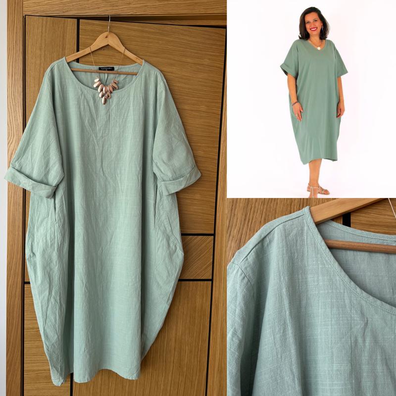 Ніжна сукня бохо з бавовни з кишенями 🔥 Ніжний мʼятний колір , має кишені , тканина бавовна Пог 70 см Поб вільно Довжина від плеча 128 см