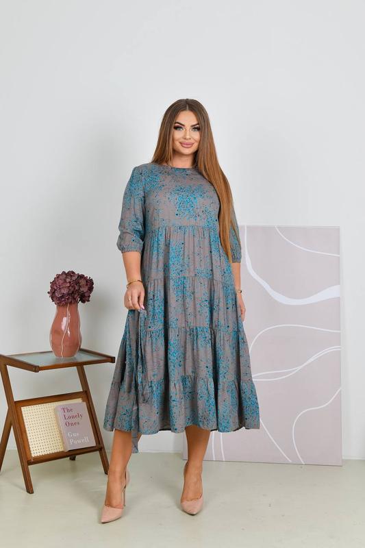 Размеры 48/50, 52, 54/56,58/60 Ткань штапель полированный Цвет , цвет мокко с бирюзовым , как на фото, с поясом 48/50 ОГ 98-102, , ДИ-118 52 ОГ-102-108,ДИ-120 54/56 ОГ-108-116, ДИ - 123 58/60 ОГ-116-124, ДИ - 123 Пояс в комплекте эль