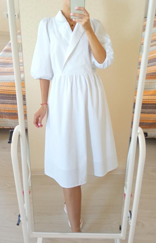 Белоснежное платье миди. Состояние отличное, без дефектов. Тканина не тягнеться. Есть подклад, не светится. Сбоку молния. Є шлейки для ременя. Размер 40-42, присмотритесь замеры 100% котон Длина 104см Пог около 54см учитывая вытачки + запах Пот 42см Поб 65см Оплата на карту!!