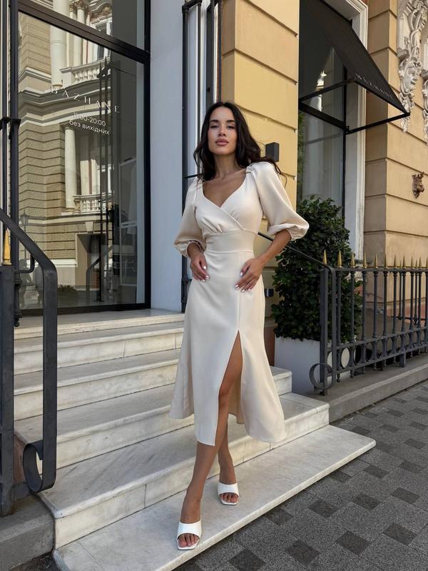 Женское платье миди с разрезом на ноге