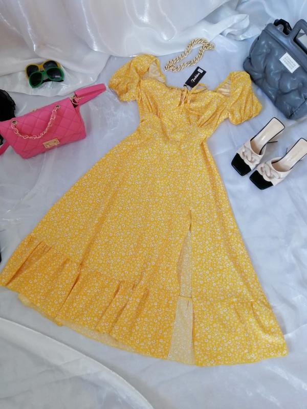 Красивое желтое платье длины миди цветочный принт размерmon подойдет на xl-xxl ориентируйт...