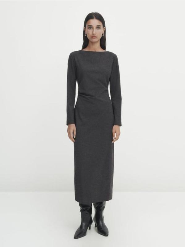 платье миди с драпировкой от Massimo Dutti. длинный рукав, вырез лодочкой, орзрод посередине до колена сзади. по наборке размер s. состояние новой. без дефектов