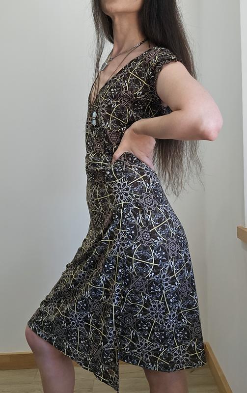 • Легкое асимметричное платье • Оригинальный узор *Фрактал* • Материал тянется Длина - 103 Талия - 34 ( тянется до 37) ОБ - 46 Плечи - 38