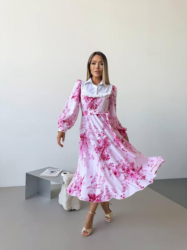 Новинка 💕 Мод 379 Платье миди 📍Тканина - софт 📍Размеры :42-44,46-48,50-52 Изящное платье миди с цветочным принтом Нежное и элегантное платье длины миди с изящным цветочным узором. Модель с легкими объемными рукавами на манжетах и акцентным белым воротником-рубашкой с декоративной рюшей, что добавляет образу изысканности. Поясная область с легкой сборкой подчеркивает талию, создавая женственный силуэт. Легкая и приятная к телу ткань обеспечивает комфорт в течение всего дня. Идеальный выбор для офиса, прогулок или особенных событий, когда хочется выглядеть стильно и непресечно. Размер 42–44 • Грудь: 94 см • Рукав: 70 см • Длина изделия: 116 см • Талия: 60–72 см Размер 46–48 • Грудь: 102 см • Рукав: 71 см • Длина изделия: 117 см • Талия: 68–80 см Размер 50–52 • Грудь: 108 см • Рукав: 72 см • Длина изделия: 118 см • Талия: 74–86 см Цена:830 грн💶имма